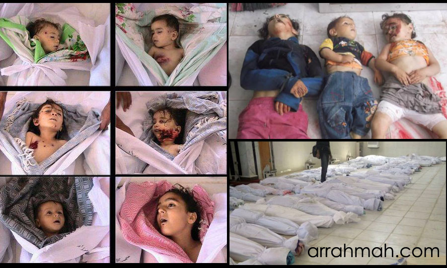 Militer rezim Nushairiyah Suriah kembali melakukan pembantaian biadab terhadap warga sipil Muslim Suriah di distrik Houla, Provinsi Homs pada hari Jum’at (25/5/2012). Sedikitnya 133 warga sipil Muslim gugur dan ratusan lainnya terluka parah dalam peristiwa pembantaian tersebut. Lebih dari 50 warga yang gugur adalah anak-anak kecil.